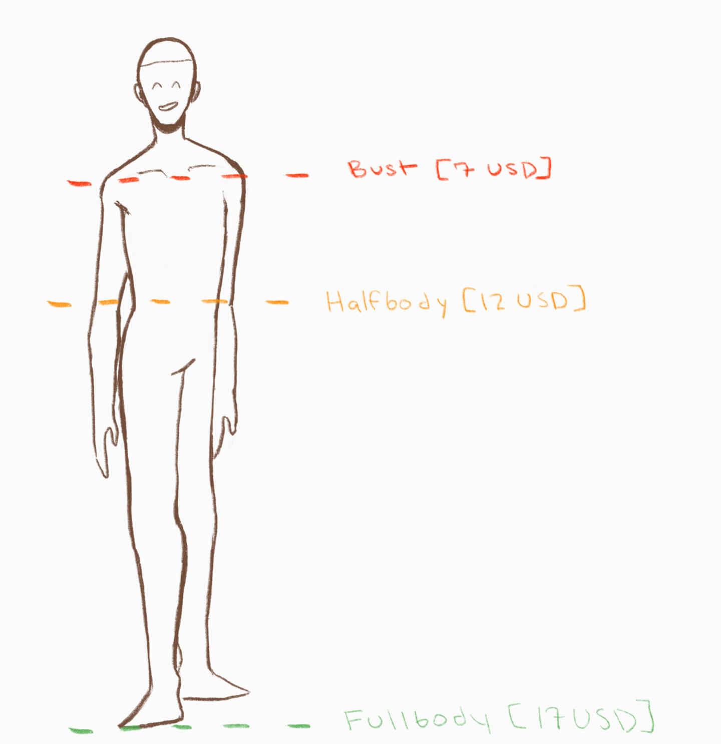 Lineart is the cheapest option I offer. Characters will have a thick outline with either no color or a singular flat color.Bust ---> $7